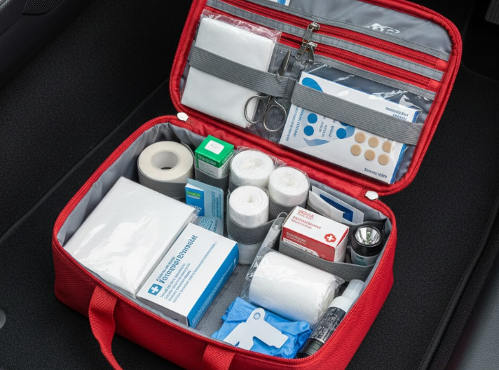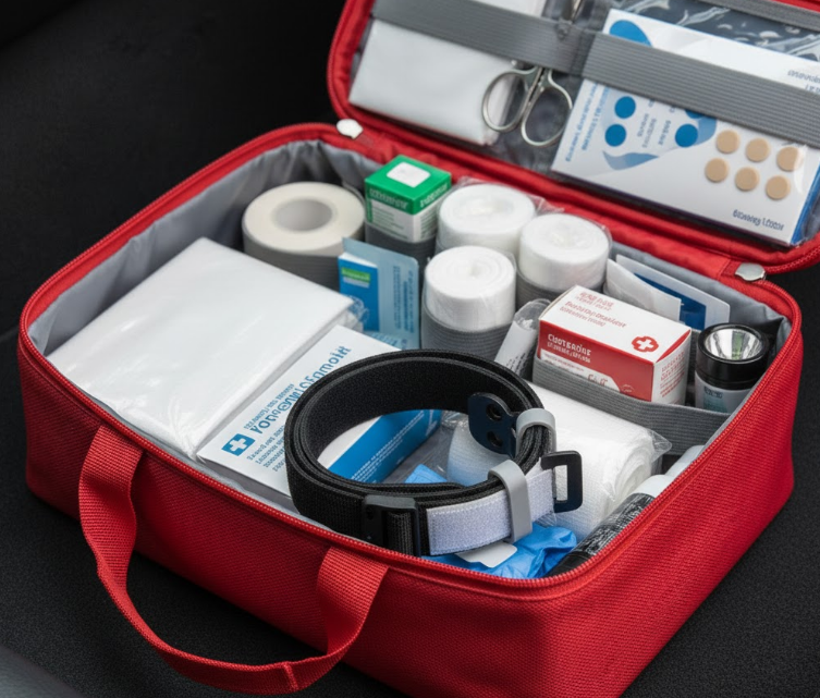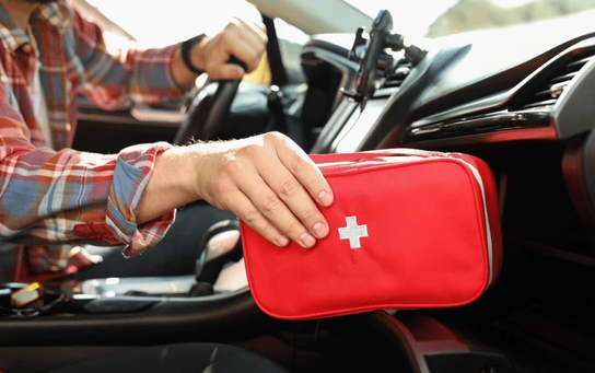 Keep a legitimate first-aid kit in your car focused on trauma and serious injuries, not just bandaids.